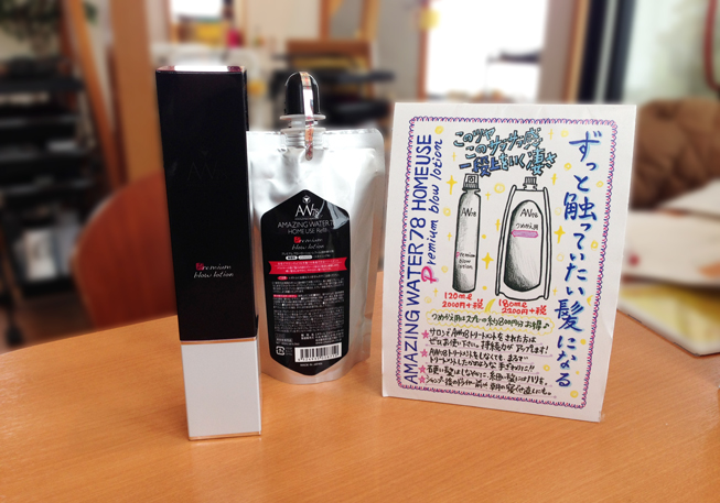 AMAZING WATER78 HOMEUSE プレミアムブローローション 2,000円(120ml/税別) プレミアムブローローション つめかえ用 2,200円(180ml/税別)